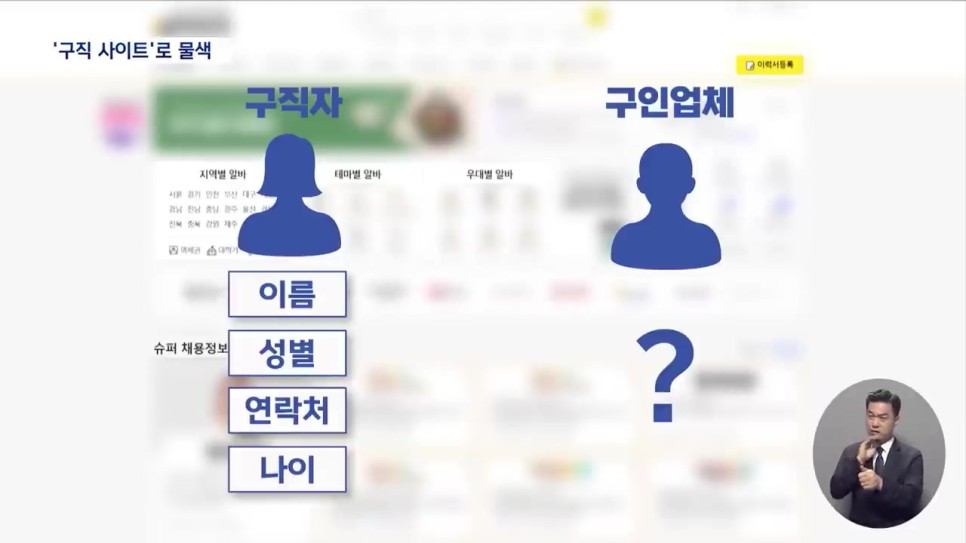구인 업체들은 구직자가 사이트에 올린 개인정보를 볼 수 있는데, 막상 구직자는 구인 업체와 구인 담당자의 정보가 실제 일치하는 지, 심지어 자신에게 연락한 사람이 누군지도 알 수 없다.